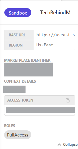 The marketplace information is then displayed. The Base URL will allow us to integrate our e-commerce solution with our Front-End application to serve the information.