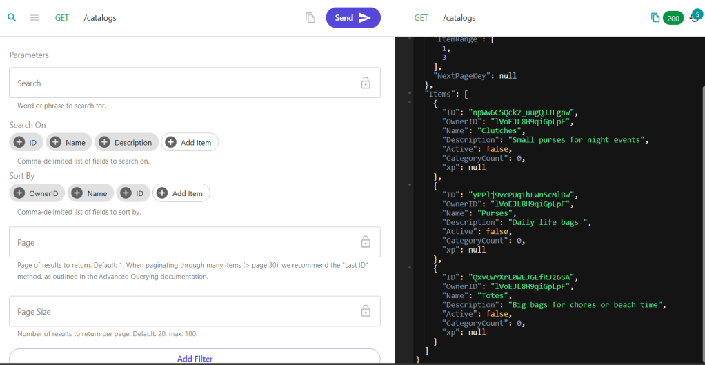 Of course, after experimenting with the CREATE method, we now have examples that we can list using the GET List method.